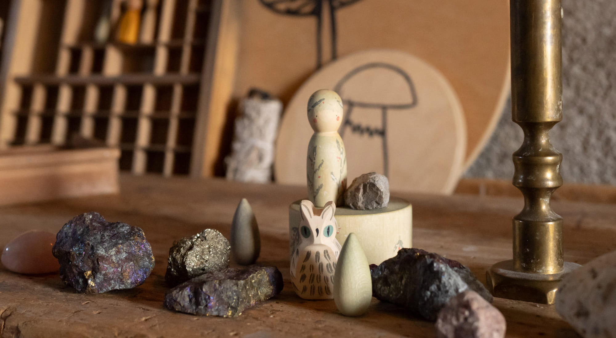 Grapat started to form as an idea after the birth of our first child, Lola. We realised how she didn’t really need any off-the-shelf toys in order to play and would use her ingeniousness to turn everyday objects into whatever she desired. Looking at how happy she was, we realised that being present, observing her needs and offering daily objects to fulfil them, was all that really mattered. After the birth of our second child Tomàs, we moved from the big city to the countryside. In the former home of Jordi’s family, we could integrate the slower way of life we had been longing for. We started to create and play with wood, and slowly but surely, the family home turned into a fully operational workshop. We would create the pieces with machinery installed in the barn where a donkey used to live years before and would stain them by hand with old sheets in kitchen where Jordi’s grandmother used to cook up delicious meals. This is when our dream, our own company, finally materialised. Grapat means “a handful” in Catalan, the native language of our land, and this is exactly where the simple idea behind this humble project came from: to carry a handful of loose pieces with the utmost care in our hands, and offer them with the same love to the hands of children.